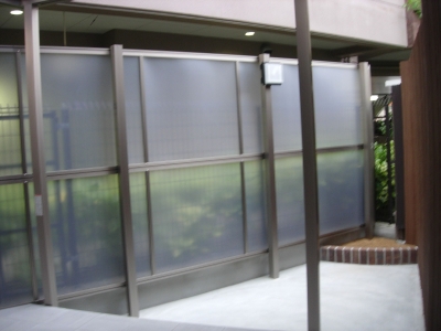掃き出しサッシの前には、タイルテラス、お隣の視線は、目隠しフェンス