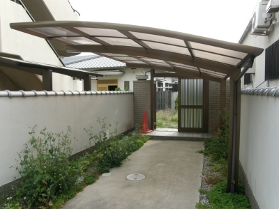 接道開口から奥の母屋まで、専用通路で入っていく形状の敷地です。
