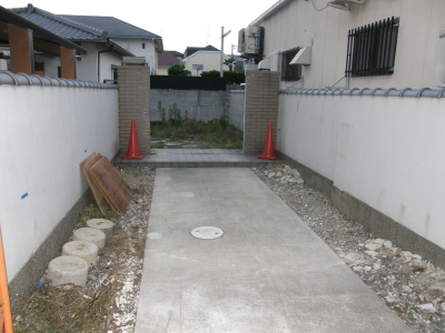 奥の門扉は取り払って、別の場所にシャッターを設置する予定です。