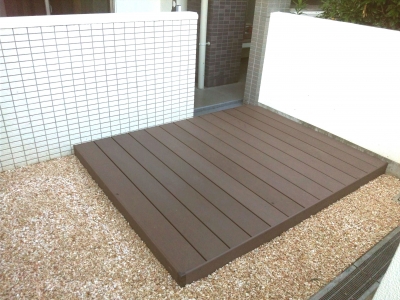 マンション1階の専用庭にウッドデッキを施工しました。
