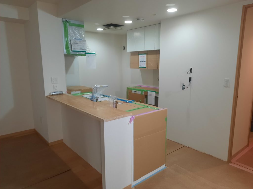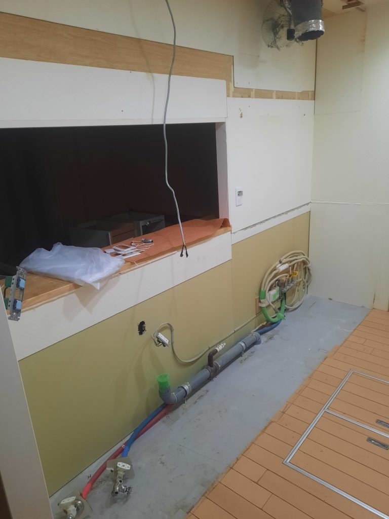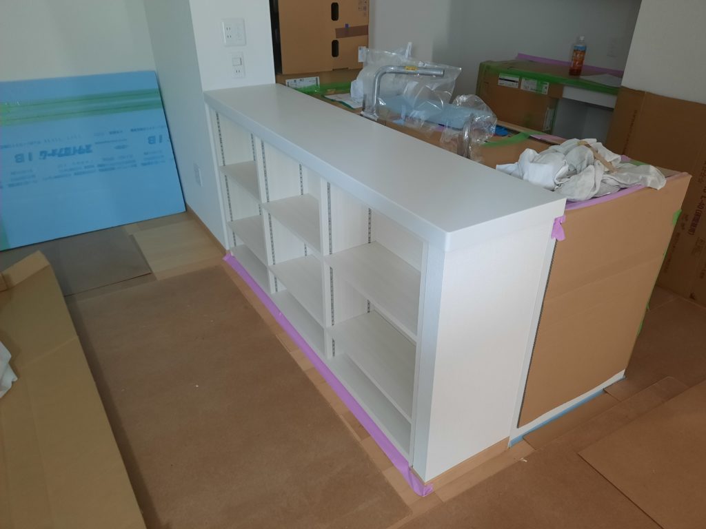 キッチン背面の周辺ユニットを設置して