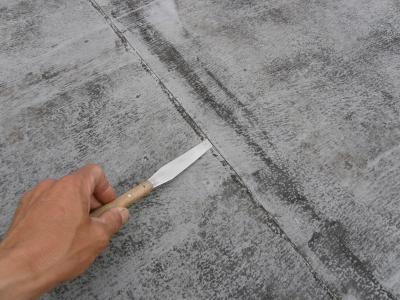 経年劣化でシートの継ぎ目がヘラが差し込めるほどすいてしまっています。