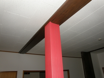 赤い柱 内装リフォーム 2012.11.202021.03.28 床、天井を仕上げて、 クローゼットも取り付けました。 構造上、取り除けない柱は、あえて部屋のアクセントに、 赤いクロスで仕上げました。 これ、「赤は元気が出る色よ!」と 御施主様、奥さまのチョイスなんですが、 これが、いい感じ! その他インテリアにも、同系色の小物があったりするそうで、 絵を描くお仕事柄、さすがのそのセンスには脱帽です!