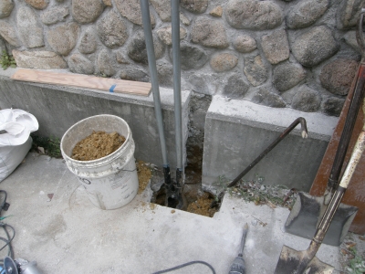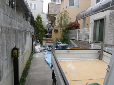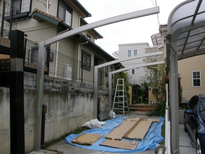 連棟カーポート 施工例 2012.05.012021.03.22 連棟カーポートです! 施工前 左の壁のいちばん奥が出っぱっています。 これでは、柱がまっすぐ通りません。 そこで、 切って、はつって、柱スペースを確保! 柱を通して建てました。