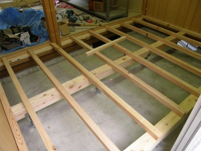 続きの部屋とバリアフリーになるように、床を組んでいます。